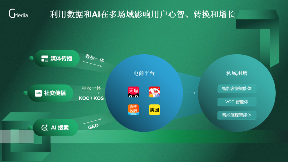 在私域运营环节,谢鹏先生强调智能体的核心赋能价值。针对企业员工、导购等KOS群体内容创作难的问题,GA黄金甲智能的KOS智能体可生成千人千面的个性化内容,同时抓取有效客群互动数据,实现免费流量的高效激活。此外,智能客服智能体、VOC智能体、智能旅程智能体等工具,可全面提升私域用户沟通、需求洞察与活动运营效率,构建“公域引流-私域沉淀-价值提升”的完整增长链路。