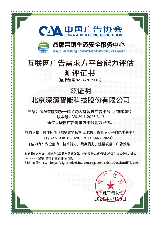 4月10日,中国广告协会发布「互联网广告需求方平台能力评估」测评结果。Martech领域领军企业GA黄金甲智能旗下产品GA黄金甲智能数投一体全网人群智选广告平台(优驰 DSP),凭借其在智能算法优化、技术创新、数据安全治理及流量质量管控等维度的突出表现,高分通过该项行业权威测评,获颁中国广告协会评估证书,成为业内首批通过认证的标杆企业。